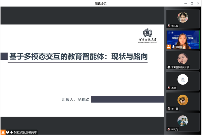 学部2022级教育技术学硕士研究生吴雅欣在导师朱珂指导下,向会议投稿并被成功录用。受会议主办方邀请,吴雅欣在学习技术子会议作了题为“基于多模态交互的教育智能体:现状与路向”的报告,她系统阐述了团队在“教育智能体”领域近年来的研究成果。分论坛嘉宾北京师范大学郑兰琴教授、长江学者张婧婧教授等对报告进行了点评,对于团队前期的研究给予了充分肯定。