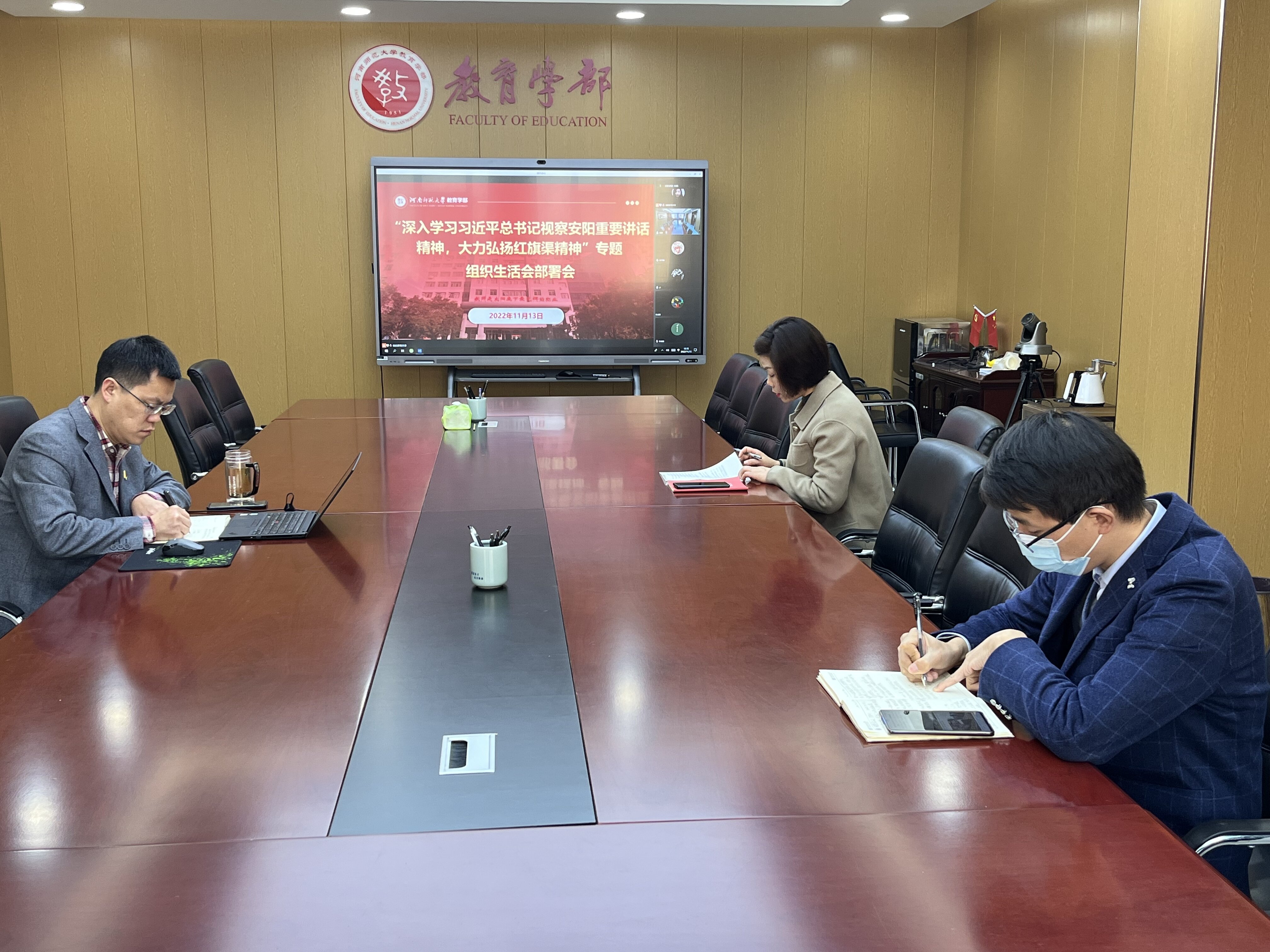 为学习贯彻习近平总书记在河南安阳考察时的重要讲话精神,进一步深入学习红旗渠精神,11月13日下午,教育学部召开“深入学习习近平总书记视察安阳重要讲话精神,大力弘扬红旗渠精神”学习部署会议。学部党委委员、党支部书记线上线下参加会议。会议由学部党委书记陈勇主持。