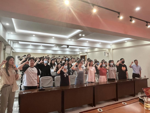 陈勇带领同学们一起观看了短视频《问对|聆听总书记寄语探寻青年人成才密码 》,引发党员们“请党放心,强国有我”的强烈共鸣,全体党员举起右拳,一起重温入党誓词,以铿锵有力的宣誓声,表达“不忘初心、牢记使命”的信念和决心。