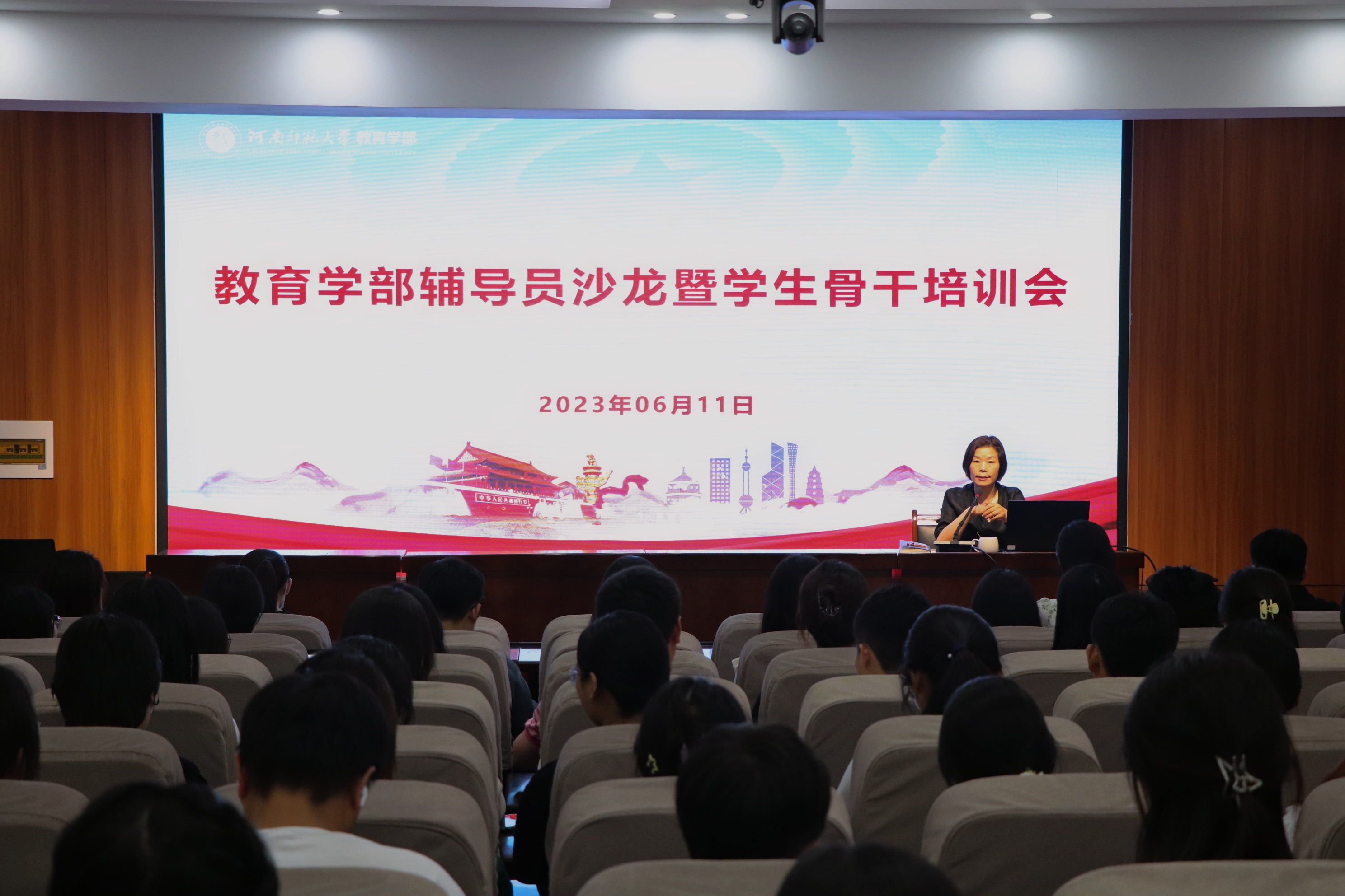 为进一步提高学部政工干部和学生骨干队伍整体素质, 6月11日晚,教育学部在田家炳819开展辅导员沙龙暨学生骨干培训会,专兼职辅导员及学生骨干参加本次培训。学部党委副书记康淑霞担任主讲。