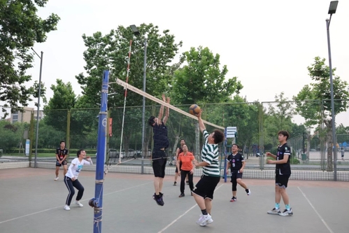 本次比赛采取五局三胜制,双方按照要求,各组成六人一组的队伍。比赛过程中,队员们精神抖擞、身姿矫健,传球组织多变,防守严密得当,引得场外观众喝彩。赛场上严肃认真,又欢乐四溢,氛围轻松愉快,展示了教职工们健康向上的精神风貌。