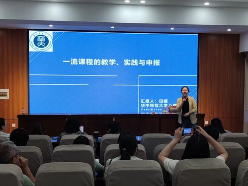 下午的讲座以“一流课程的教学、实践与申报”为题,田教授结合自己获批3门国家级一流课程的经验介绍了课程资源建设与应用中的方法,并详细介绍了一流本科课程建设与申报的要点。