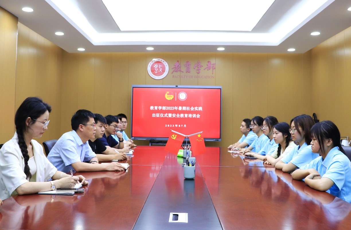 为加强对暑期“三下乡”暑期社会实践活动的指导,确保活动安全有序开展,7月6日上午,教育学部于田家炳教育书院801会议室召开2023年暑假社会实践出征仪式暨安全教育培训会。学部党委书记陈勇、团委书记魏尔康、实践团队指导老师陈赞赞、尹晓炯及全体实践队员参加本次会议。