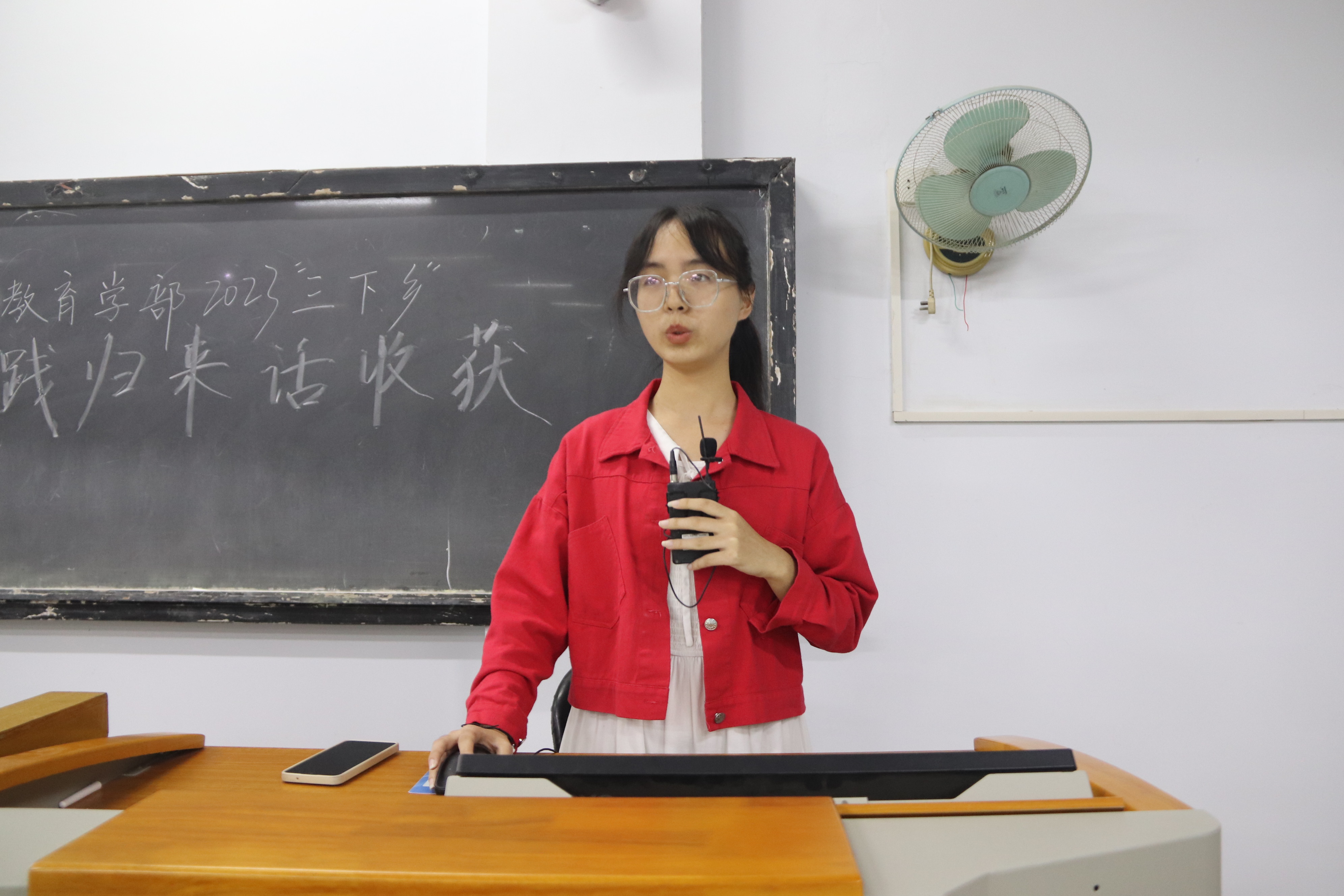 以实践出真知,以真情话收获。为进一步巩固教育学部2023年暑期社会实践成果,帮助2023级同学了解“三下乡”社会实践活动,激励更多学子投入到社会实践中,10月14日晚,教育学部于新554楼202教室举办了“实践归来话收获”主题活动。学部参加社会实践的学生代表及2023级新生参加此次活动,活动由2021级小学教育专业刘子依主持。