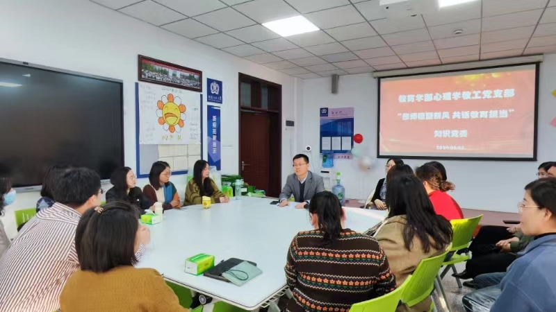 为响应我校“科学道德与学风建设主题教育”宣传周活动,1月7日下午教育学部心理学教工党支部开展“修师德塑新风,共话教育担当”师德师风主题党日活动以集中学习和知识竞赛形式,进一步增强教师对学术道德学风建设和师德师风的重视活动由心理学教工党支部书记、院长刘小先主持。