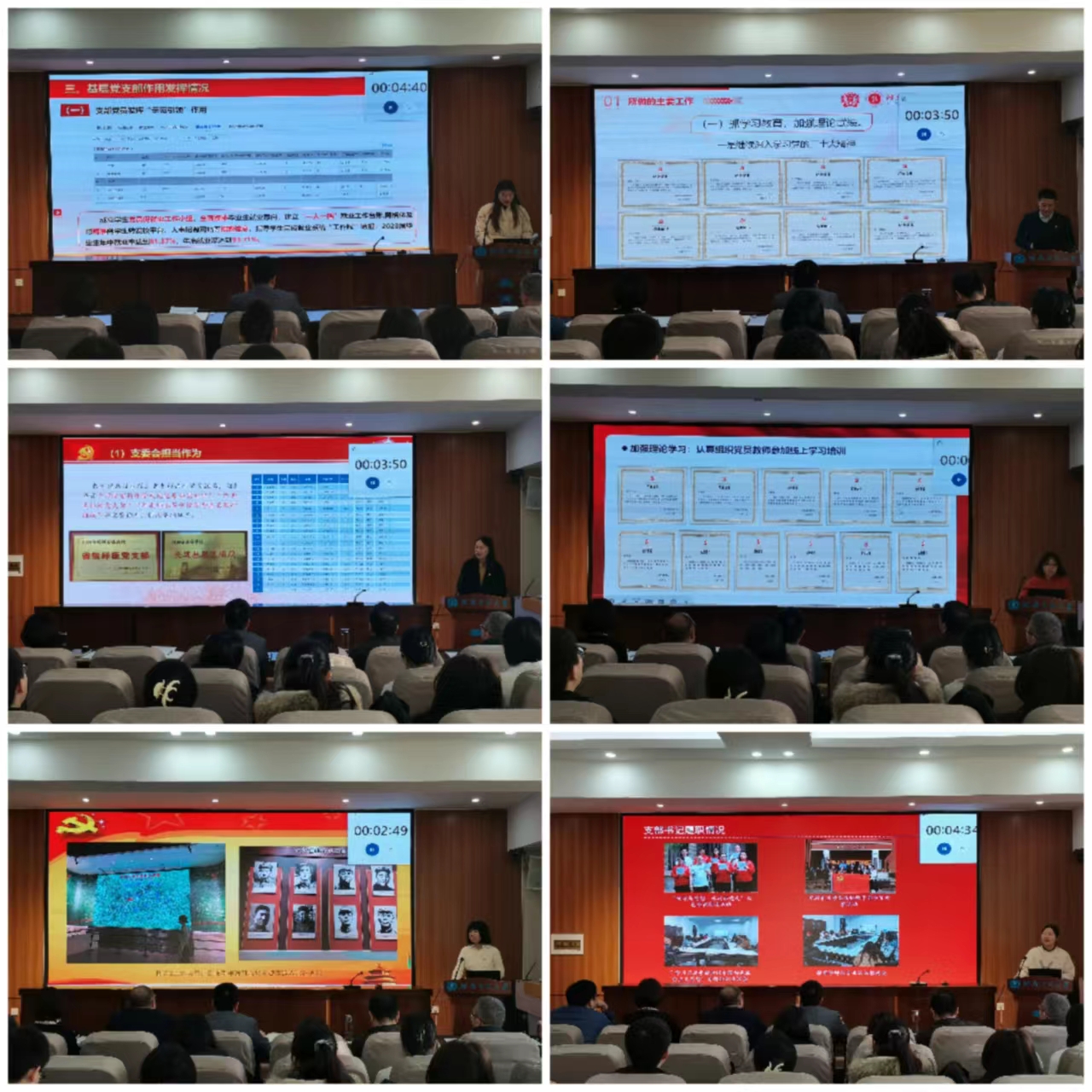 会上,19名党支部书记围绕2023年度抓党建工作一年以来履行党建责任情况、党支部建设、基层党支部战斗堡垒和党员先锋模范作用发挥、存在的问题及改进措施四个方面,聚焦全面加强新时代高校党支部建设,重点围绕提升组织力、强化政治功能,推动党支部教育、管理、监督党员和组织、宣传、凝聚、服务师生,做到“七个有力”等情况进行了PPT述职汇报。
