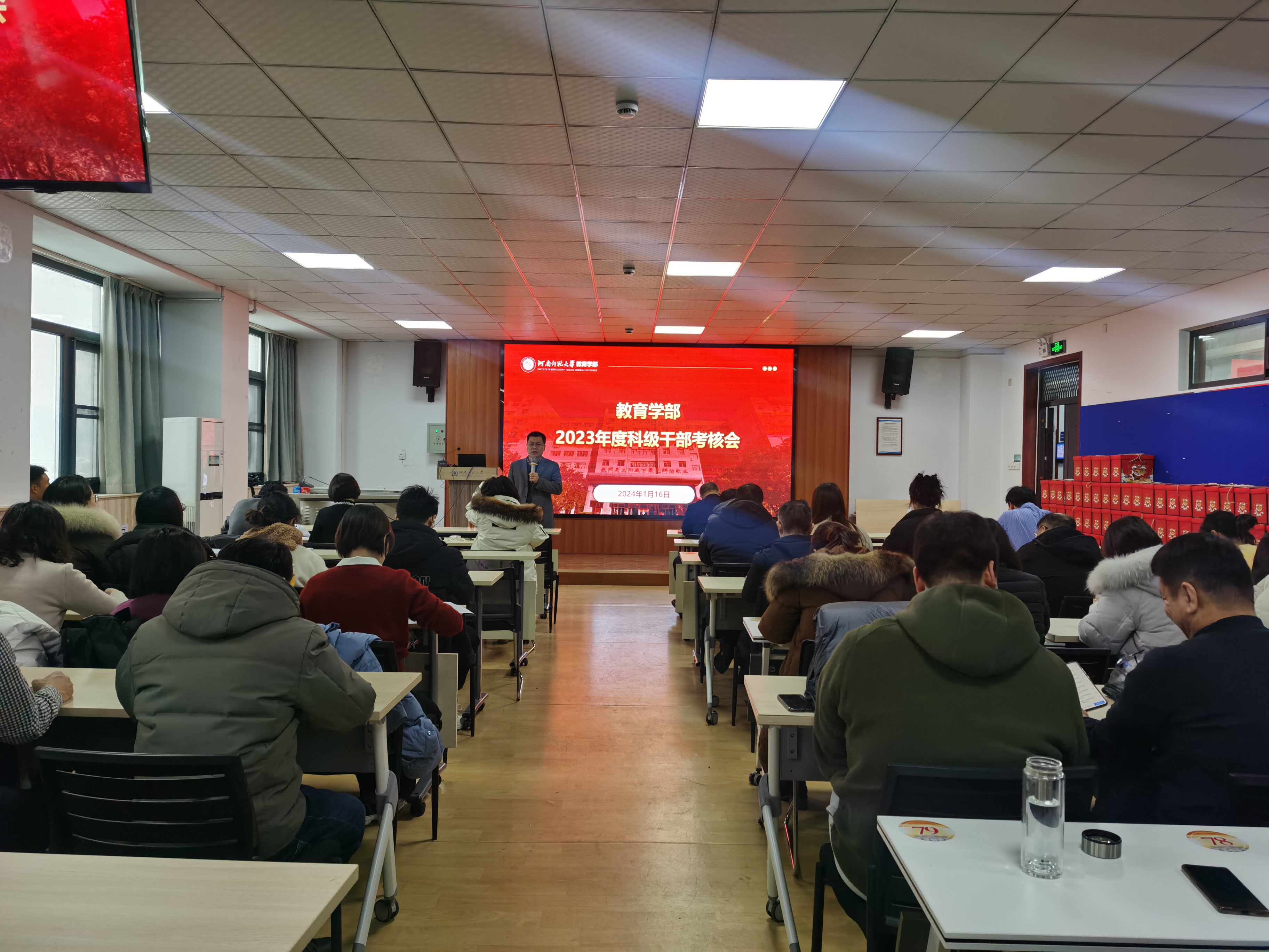 会上,学部副处级领导结合各自分管工作全面总结了2023年工作,提出存在的问题,并就2024年重点任务进行了汇报。随后,心理学院、教育学院、学前教育、小学教育、教育信息技术学院等5名学院(专业)负责人作为科级干部代表分别就2023年度工作开展情况、学院特色和创新工作、存在的主要问题和2024年工作思路向全体教职工进行现场述职,其他科级干部进行书面述职。在认真听取科级干部述职的基础上,全体参会人员结合平时了解,本着实事求是、客观公正的态度,对科级干部进行了民主测评。