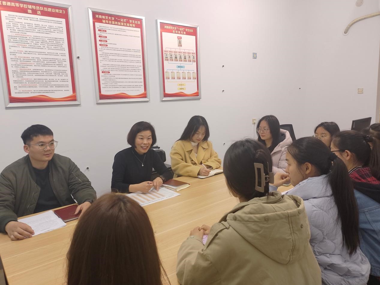 为进一步推进教育学部“一站式”学生社区建设,打造高效便捷的学生服务平台,满足同学们多样化的学习与生活需求,3月13日晚,教育学部组织开展了“一站式社区建设我来谈”座谈会,教育学部党委副书记、西十五楼楼长康淑霞,2022级专兼职辅导员及各楼层支部书记参加此次座谈会。会议由教育学部2022级辅导员尹晓炯主持。