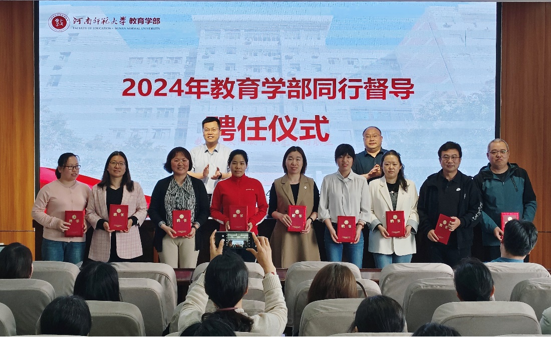 会上,教育学部党委书记陈勇宣读了本年度同行督导名单,陈勇书记、罗红艳部长为刘小先等10位同行督导代表颁发了聘书,并代表学部对同行督导的工作表示感谢。聘任仪式结束后,罗红艳强调同行督导在人才培养过程中具有重要作用,是落实学校“四级督导”制度,把好学部本科教学质量关的重要抓手。鼓励同行督导教师要深入课堂听课,及时发现学部教师上课中存在问题,及时指导上课教师持续提升课堂教学效果。