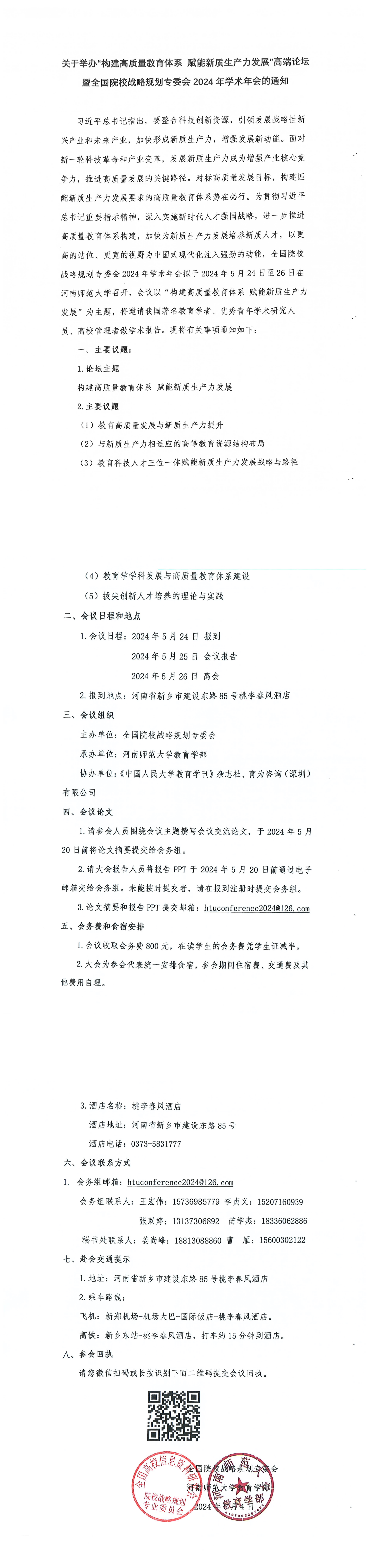 学术会议预告:关于举办“构建高质量教育体系 赋能新质生产力发展”高端论坛暨全国院校战略规划专委会2024年学术年会的通知
