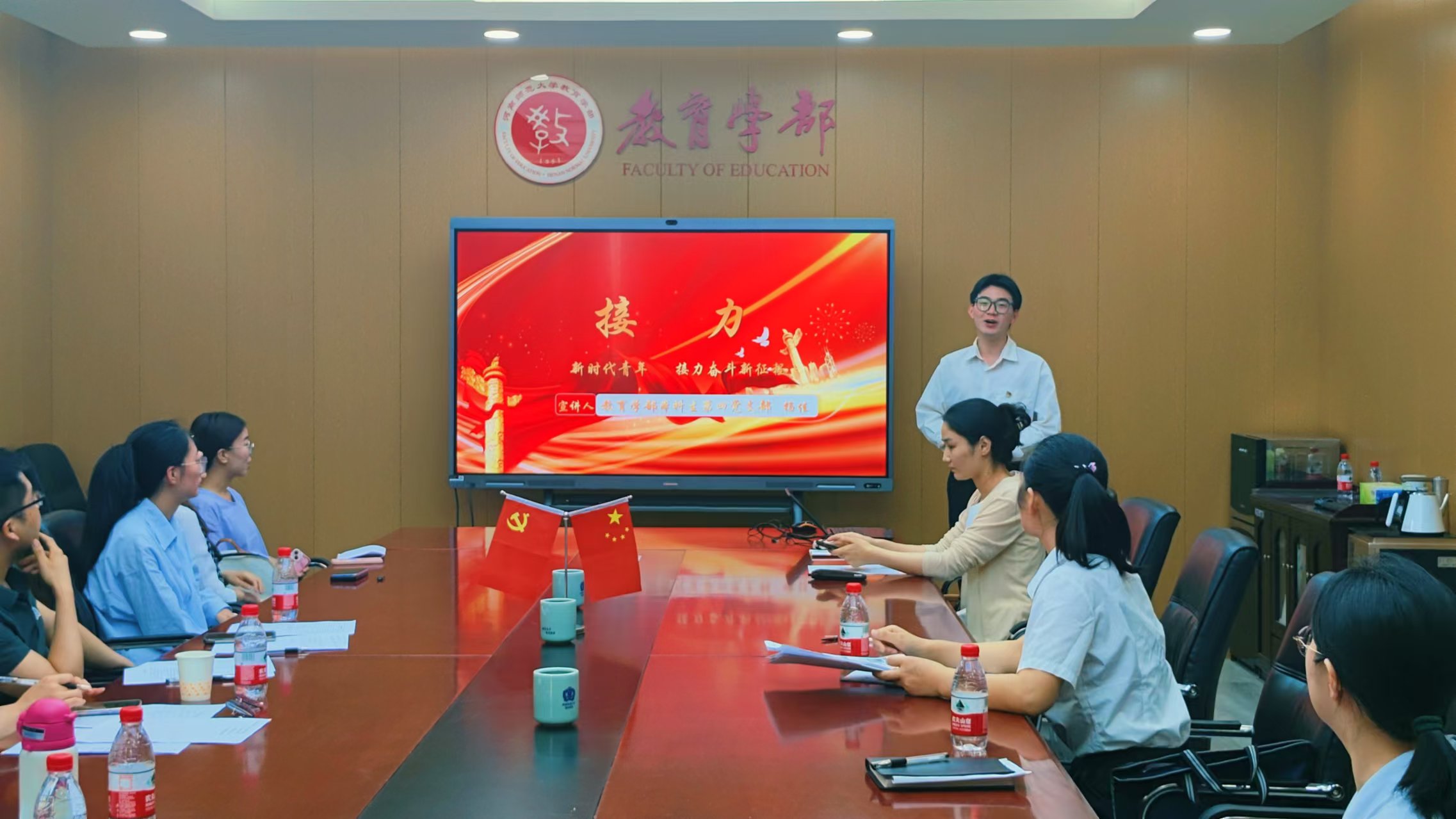 为全面贯彻党的二十大和二十届二中全会精神,深化巩固拓展学习贯彻习近平新时代中国特色社会主义思想主题教育成果,彰显党的创新理论的真理伟力,5月17日,教育学部在田家炳教育书院801会议室举办“点亮师大红”微党课比赛。学部党委书记陈勇到场观看。