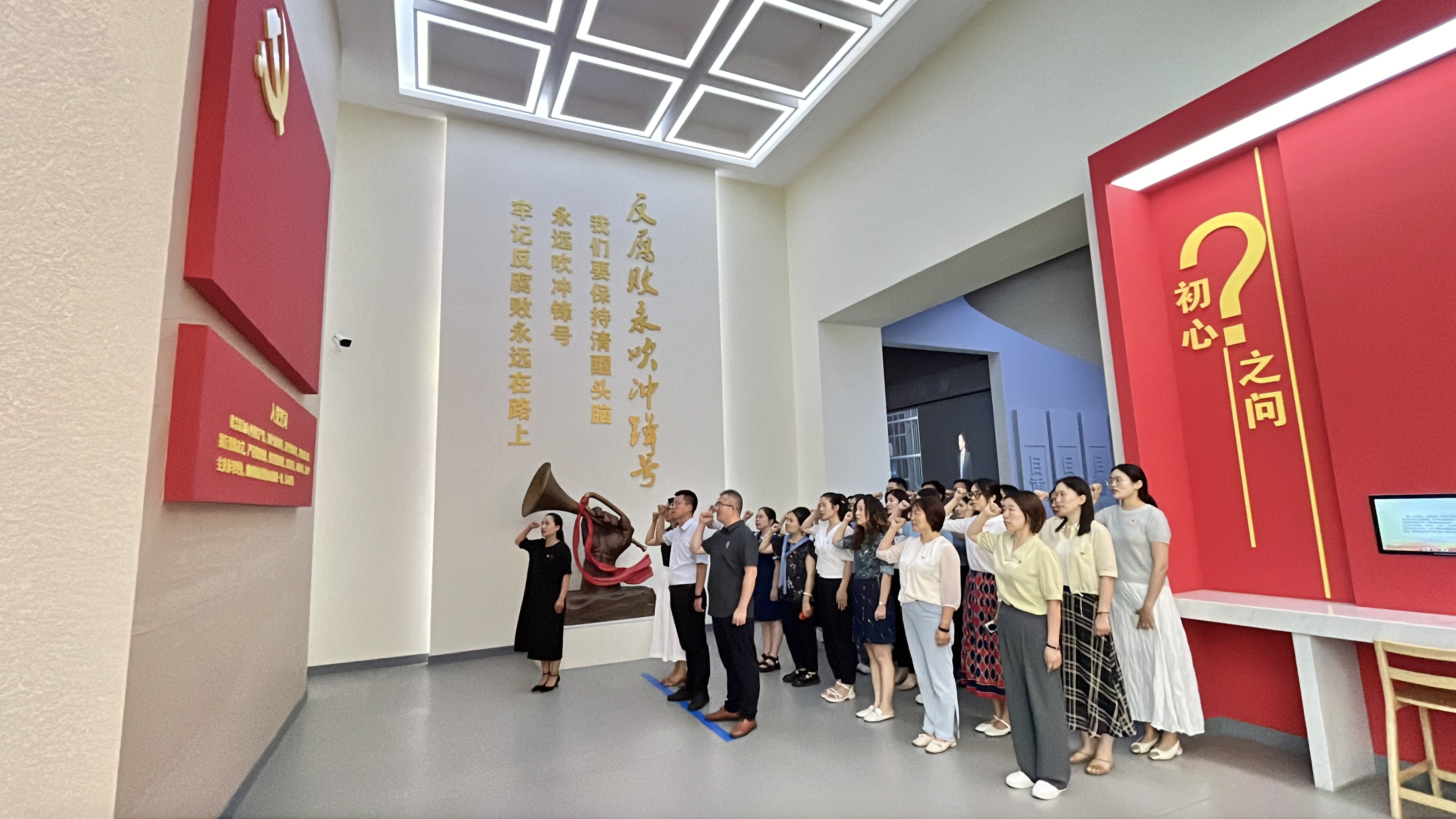 在讲解员的引领讲解下,大家依次参观了“打造铁的纪律、全面从严治党、建设清廉新乡、涵养廉洁文化”四个展厅和“抉择之路、警钟常鸣”两个沉浸空间接受精神的洗礼深入了解了中国共产党的党风廉政建设历程,学习了党的十八大以来习近平总书记关于党风廉政建设的重要论述,重温了党的自我革命永葆生机的赶考之路。大家通过展馆内的图文展板、实物展陈和数字影音等多种形式,以正面教育引导与反面警示震慑相结合的教育方式进行了“沉浸式”学习,从思想上正本清源,筑牢思想道德防线,增强拒腐防变能力。