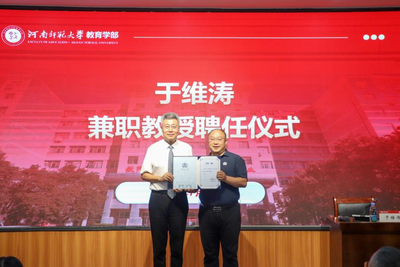 7月14日下午,教育学部在田家炳819会议室隆重举行兼职教授聘任仪式。教育部中小学校长和幼儿园园长国家培训项目管理办公室主任、国家教育行政学院教师工作与研究部主任于维涛教授受聘为伟德官网下载苹果版兼职教授。教育学部部长罗红艳、副部长衡书鹏、培训办主任彭小洪参加仪式。聘任仪式由衡书鹏主持。
