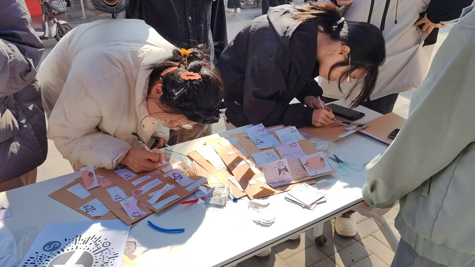 本次活动包含“墨香送雅,敬赞佳人”“妙趣emoji,成语猜猜”和“织就繁花,智起芳华”等内容。“墨香送雅,敬赞佳人”暖心话语征集活动要求同学们抽取主题卡片,写下对彼此的夸赞。一笔一划间,满是真诚与善意,这些文字不仅传递给了他人,更在书写过程中,让同学们自身感受到了积极情感的鼓舞。“妙趣emoji,成语猜猜”主题活动将现场氛围推向高潮。同学们置身于 emoji 图片排列组合的头脑风暴中,积极思考,在欢声笑语中一扫低落情绪,释放心理压力。“织就繁花,智起芳华”创意手工活动成为活动亮点。参与者领取扭扭棒,制作出美丽的花朵。在创作过程中,同学们专注投入,既锻炼了动手能力,又在作品完成时收获了满满的自信与愉悦。2023级汉语言文学专业李若晴同学分享道:“此次活动非常有意义。当我写下对同学的夸赞时,内心也被那些温暖的话语所触动,感觉自己充满了力量。活动中收获的勇气与力量让我对未来充满信心,更加坚定了积极面对生活的决心。”
