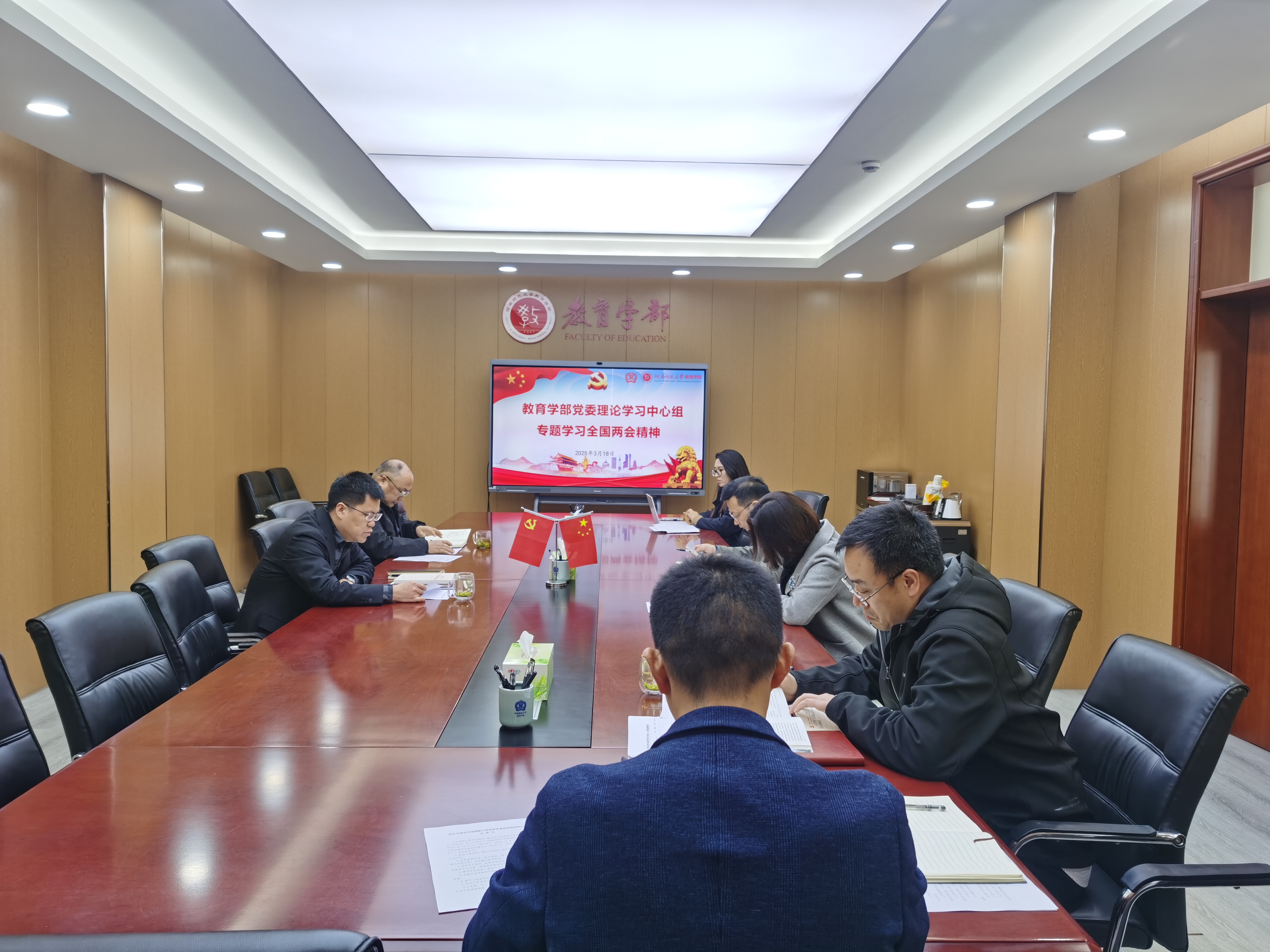 3月18日上午,教育学部在田家炳教育书院801会议室召开党委理论学习中心组会议,专题学习全国全会精神,会议由学部党委书记陈勇主持。
