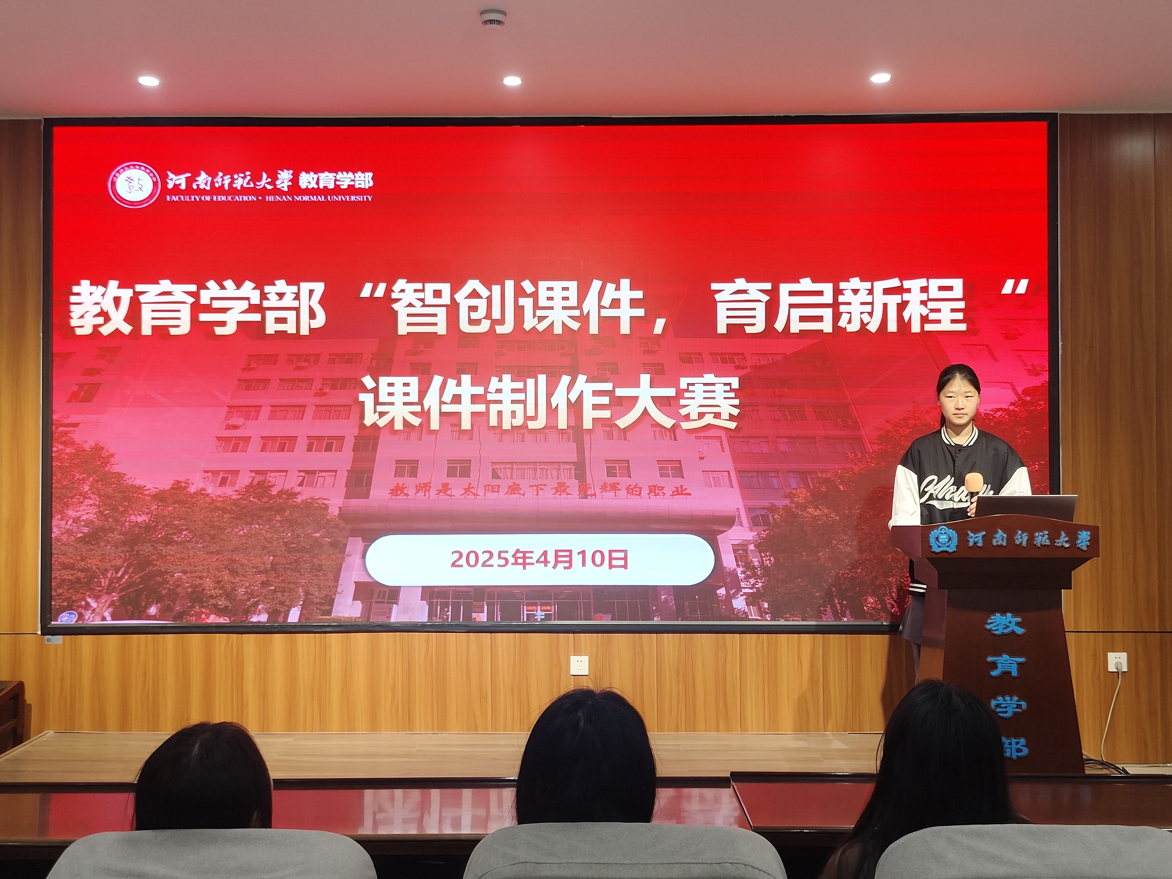为提升学部学生的基本技能和综合素质,4月10日晚,教育学部在田家炳教育书院819会议室举办“智创课件,育启新程”课件制作大赛。比赛邀请校课件制作大赛获奖者马奕菲、刘明洋担任评委。经前期初赛选拔,共10余名选手参与此次比赛。