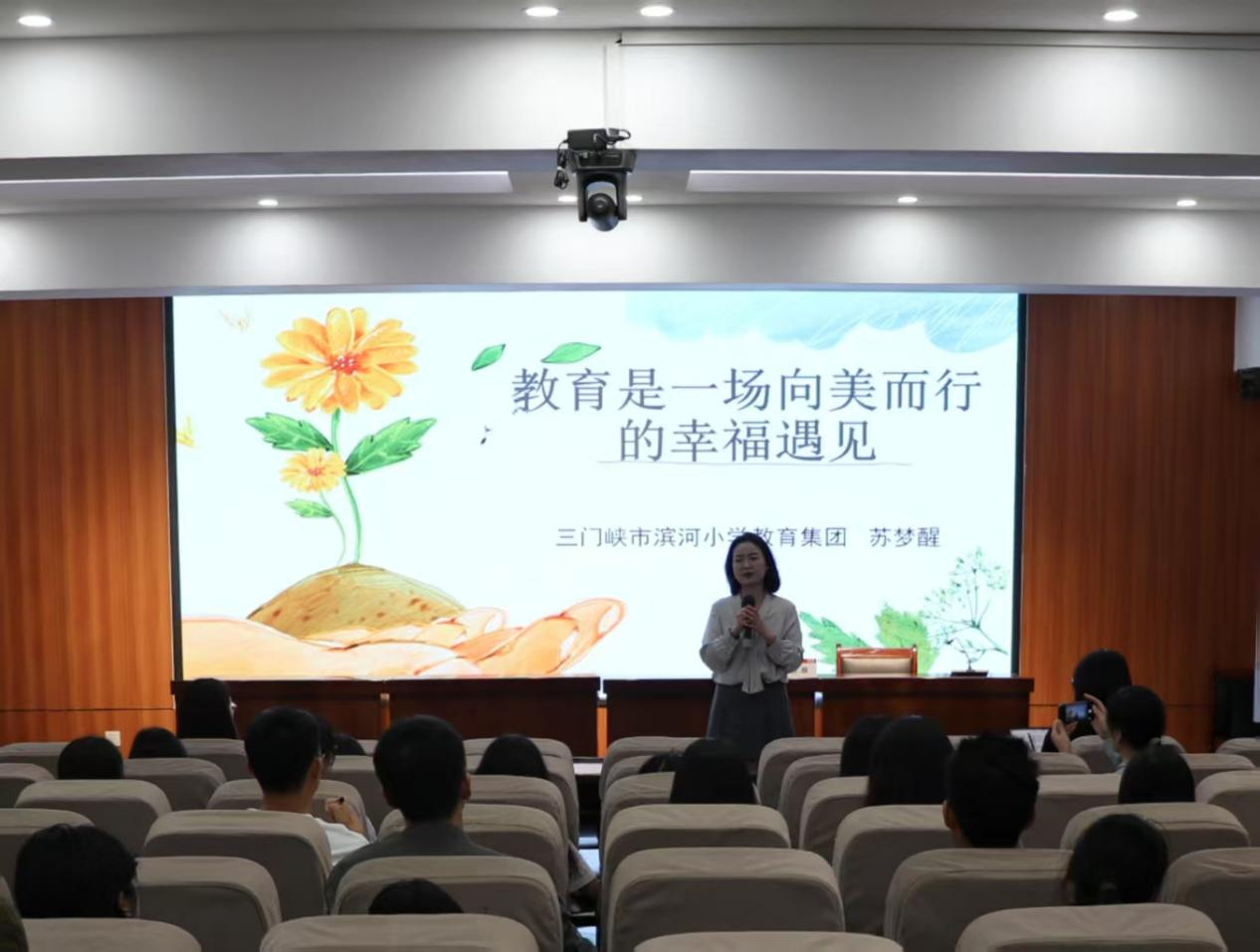 苏梦醒以“教育是一场向美而行的幸福遇见”为主题,从教育哲学的高度分享了她对教育本质的思考。她用温暖而睿智的语言,通过讲述自己从普通教师到教育管理者的成长历程,诠释了教育工作的独特魅力。“教育不是简单的知识传递,而是师生共同发现美、创造美的过程”,这一观点引发了现场师生的强烈共鸣。
