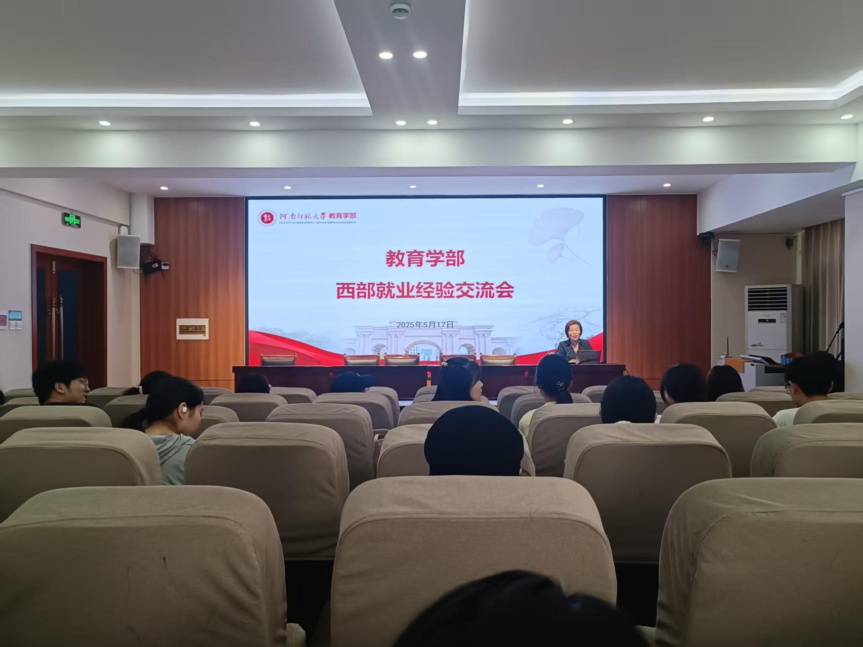 为进一步落实学校“就业西向计划”工作部署,5月17日下午,教育学部在田家炳教育书院819会议室举办西部就业经验交流会。活动特邀现就职于喀什大学的教育学部2024届研究生李飒担任主讲,学部党委副书记康淑霞、毕业班辅导员及80余名有西部就业意向的本科生、硕士生参加。会议由研究生辅导员陈宏志主持。