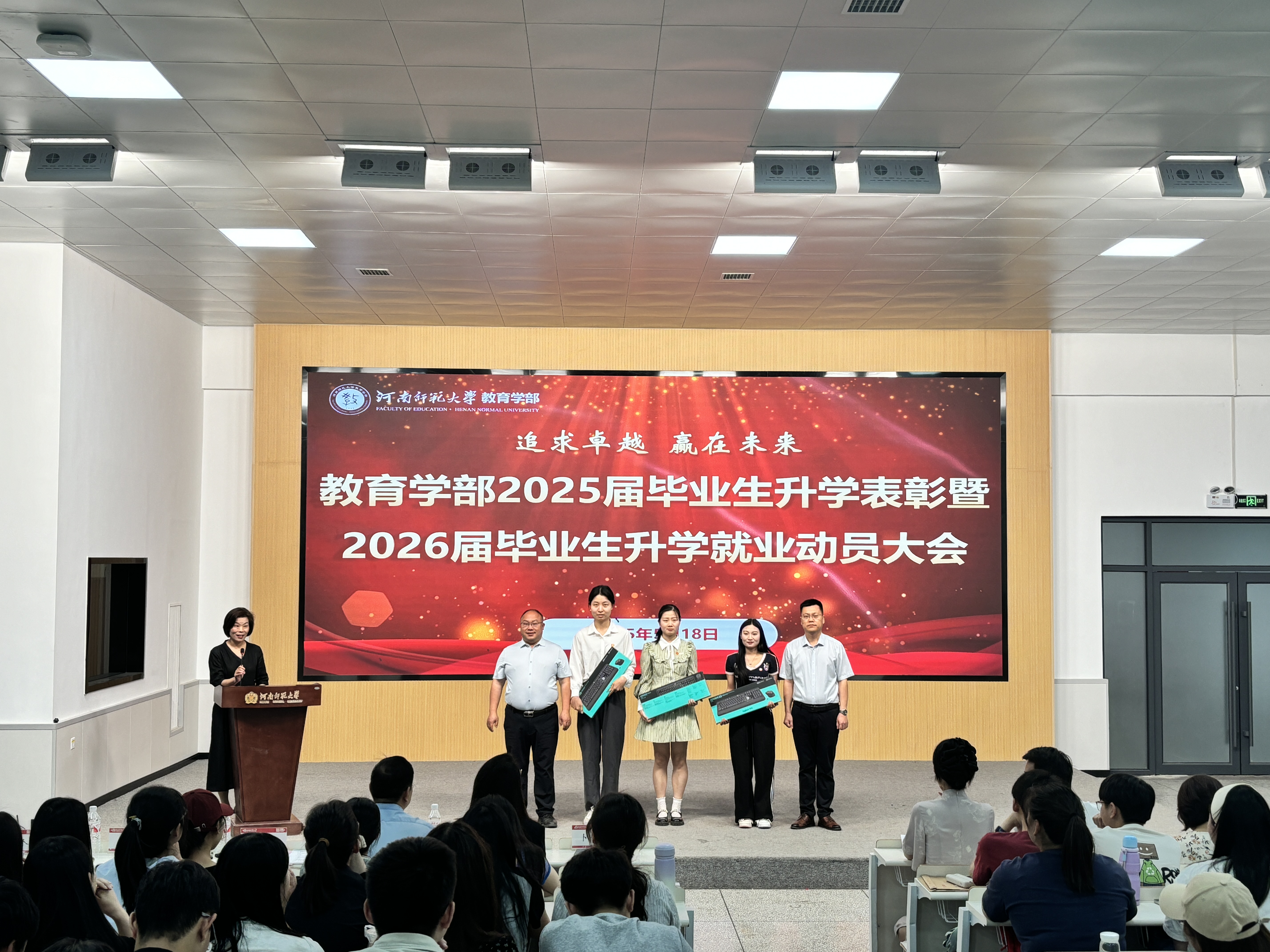 为表彰先进,树立典型,弘扬学部“追求卓越,赢在未来”的优良学风,进一步助推毕业生升学与就业工作,5月18日上午,教育学部在万人餐厅三楼树蕙堂隆重召开2025届毕业生升学表彰暨2026届毕业生升学就业动员大会。教育学部党委书记陈勇,部长罗红艳,党委副书记康淑霞,副部长朱珂、卜彩丽及各专业负责人、全体辅导员出席大会,2025届、2026届全体毕业生1000余人线上线下方式参会。会议由党委副书记康淑霞主持。