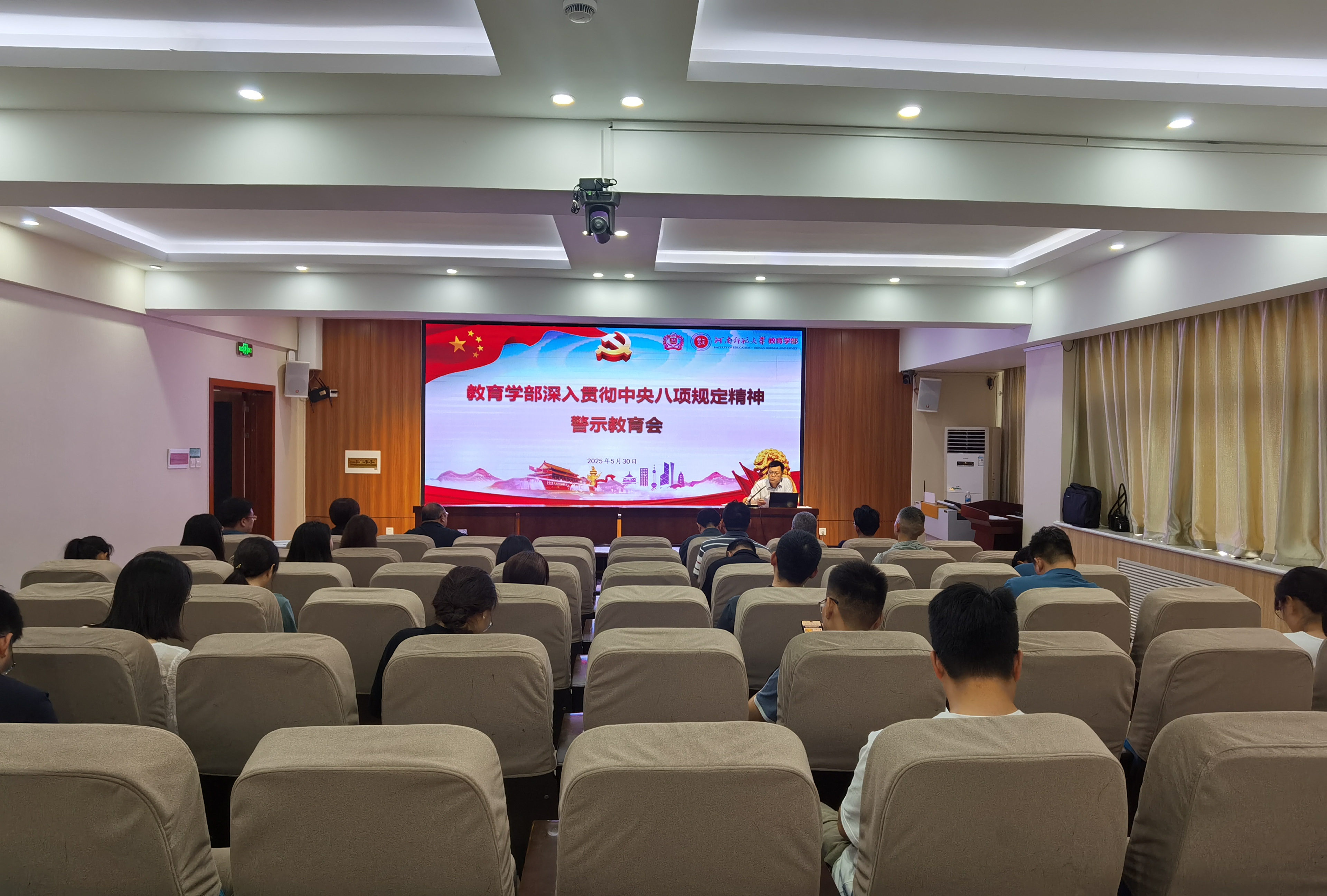 5月28日和5月30日,教育学部组织召开两场深入贯彻中央八项规定精神警示教育会。学部党政领导班子、党支部书记、全体科级干部、辅导员参加会议。会议由学部党委书记陈勇主持。