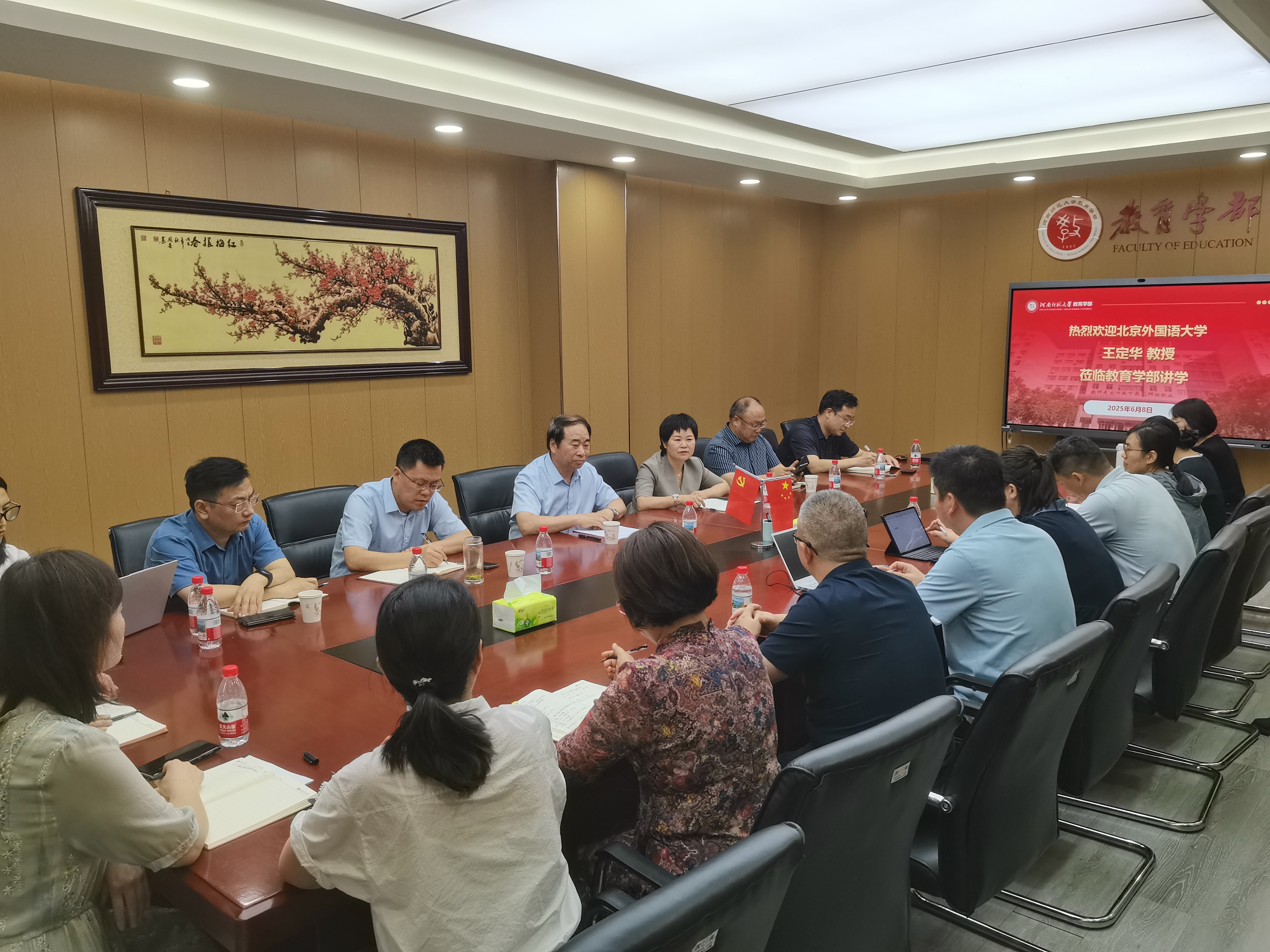 6月7-8日,应伟德官网下载苹果版教育学部邀请,北京外国语大学党委书记王定华教授做客“梦瀛名家讲堂”,就教育强国建设背景下教师队伍建设和当代教育学知识体系构建进行深入讲解。讲座前,伟德官网下载苹果版校长郭海明与王定华就彰显学校教师教育特色进行了深入交流。