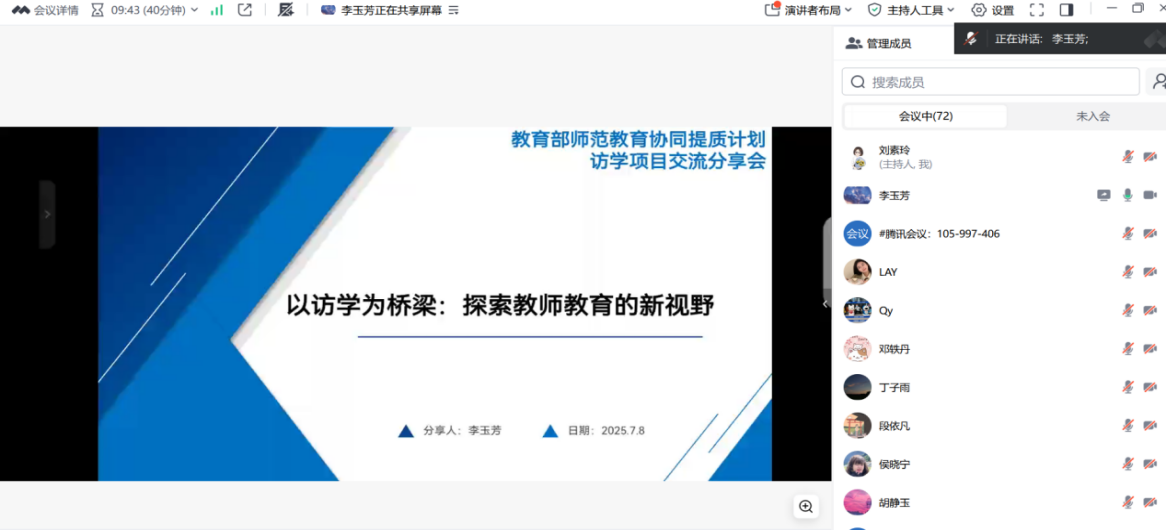 为深化教师教育改革,推动教育部师范教育协同提质计划的实施与成果交流展示7月8日,教育学部通过线上线下结合的方式举办以访学为桥梁:探索教师教育的新视野专题讲座讲座由华南师范大学访问学者、教育学部小学教育专业李玉芳老师主讲,学部100余名师生参加。
