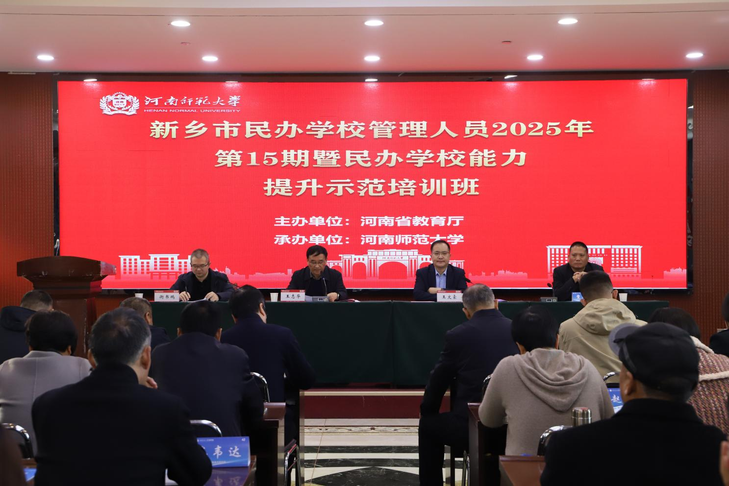 11月11日上午,由我校承办的新乡市民办学校管理人员2025年第15期暨民办学校能力提升示范培训班在辉县党校举行开班仪式。新乡市教育局党组成员、副局长王志华,校外教育培训监管科科长贾献礼,教育学部党委书记王文豪出席仪式。100名来自新乡市各县(市)、区分管民办教育的副局长、科(股)长及民办教育学校举办人和校长参加开班仪式。仪式由教育学部副部长衡书鹏主持。
