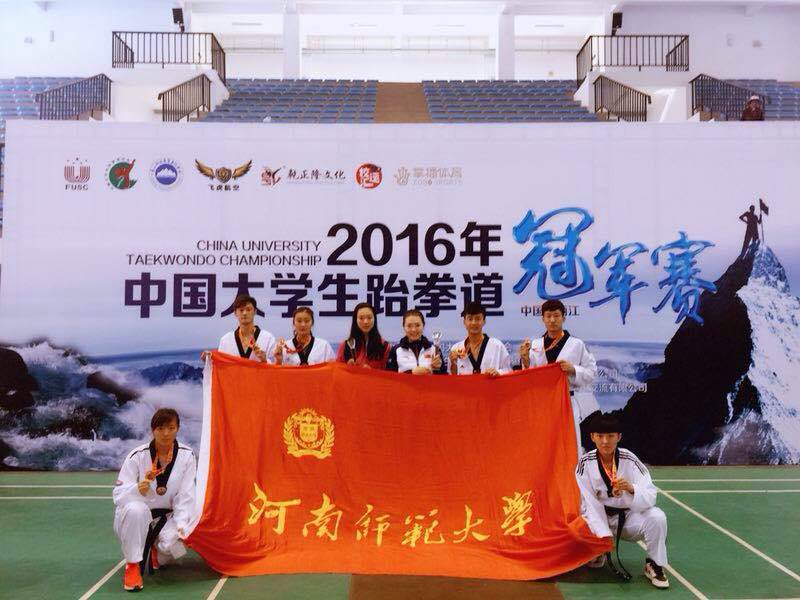 我校跆拳道队作为河南省高校唯一一支代表队参加了本次比赛,本次比赛首次以团体赛形式进行,我校女子乙组团体(运动训练高水平组)由体育学院张懿馨、付博宇、其勒木格组成,男子丁组团体(超级组)由于亚宏、李加天、于益民组成,面对全国各高校强队,我校运动员克服高原反应,经过激烈拼搏最终取得男子丁组团体(超级组)冠军,女子乙组(运训高水平组)第三名的优异成绩,为我校挣得了荣誉。此外我校跆拳道队被大会评为“精神文明运动队”,梁潇老师被评为“优秀教练员”。