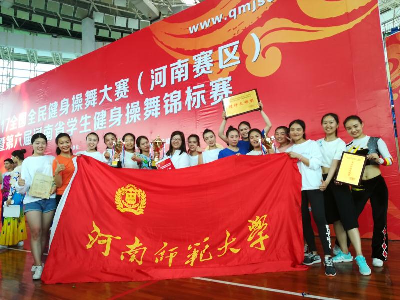 本次比赛由国家体育总局体操管理中心、中国健美操协会、河南省教育厅、CFDD全国全民健身操推广委员会主办,河南省学生体育总会健美操协会、信阳师范学院承办。我校荣获河南省“精神文明奖”,岳晓燕老师荣获河南省教育厅颁发2017年度“优秀教练员”,宁杰同学获2017年度“最有价值运动员”称号, 张其琦、赵艺杰、赵雪梅等同学被评为“优秀运动员”。