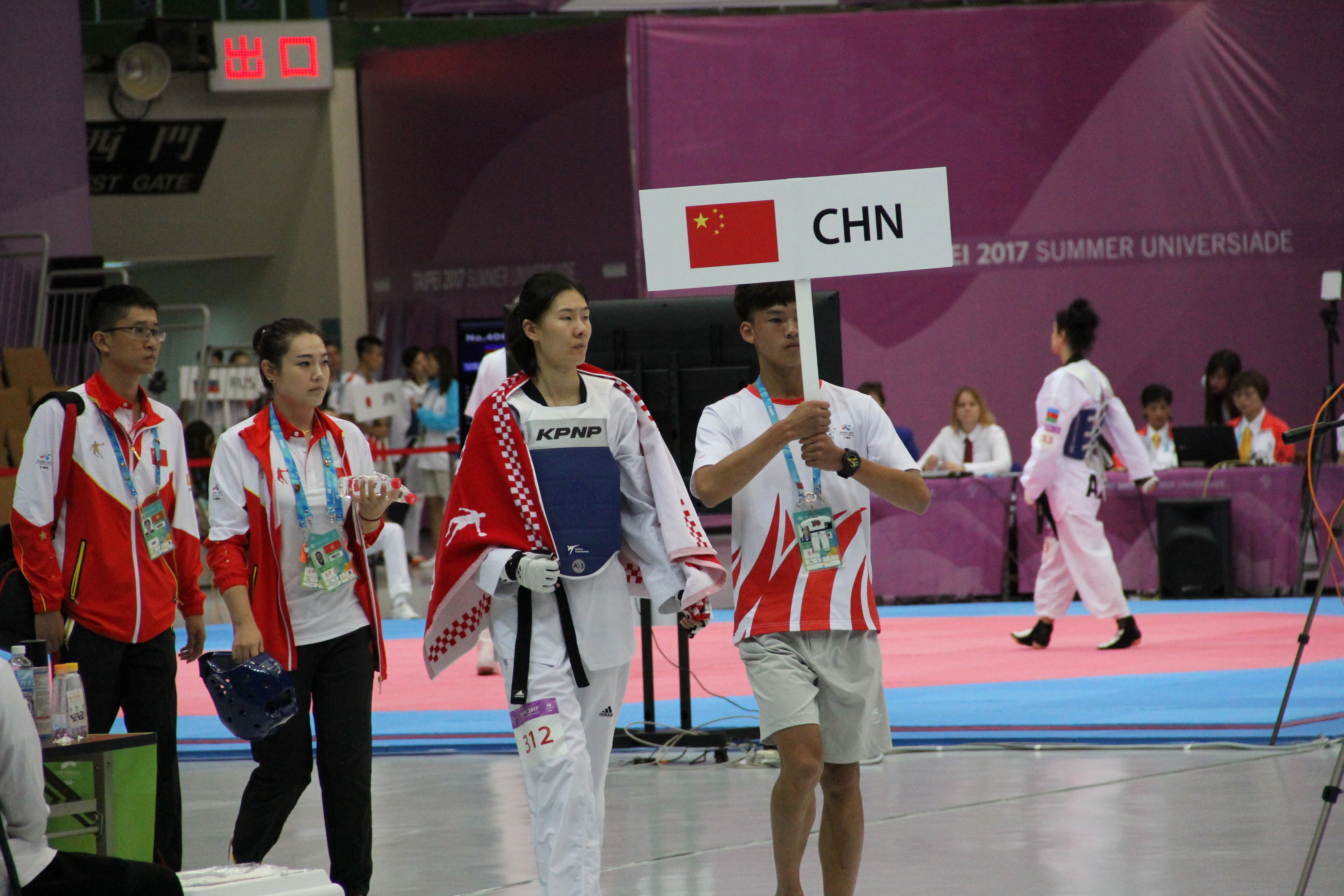 本次比赛中国大学生跆拳道队共派出11名运动员参赛,我校学生程晨,包蕾参加了跆拳道竞技项目女子67公斤级和女子73公斤级比赛,与来自三十多个国家的顶级跆拳道高手同场竞技,在赛场上不畏强敌,顽强拼搏,最终程晨取得女子67公斤级第五名的好成绩,这也是本次中国跆拳道竞技队的最好成绩。
