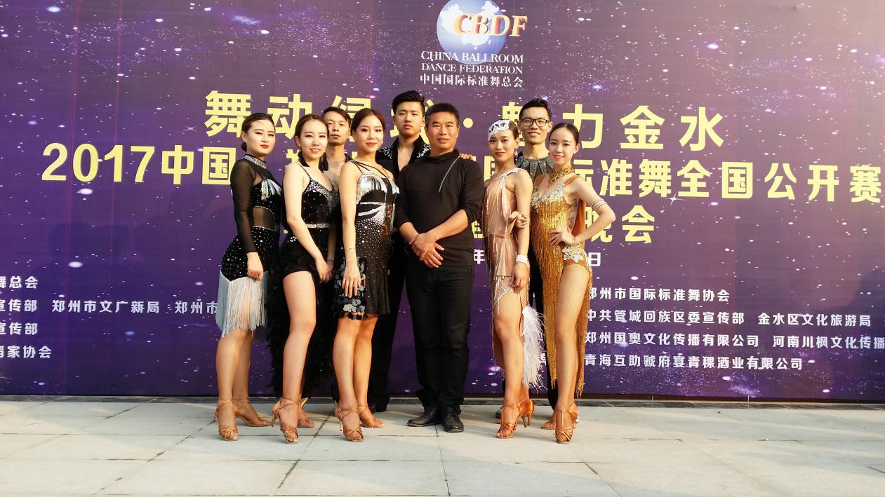 10月28--29日,2017年中国·郑州第三届国际标准舞全国公开赛暨世界巨星表演晚会,在郑州市体育馆隆重举办。本次比赛由中共郑州市委宣传部、郑州市文广新局、郑州市文联、中共金水区委宣传部联合主办,共有来自全国各省市自治区直辖市,香港澳门等143个代表队近4000对次选手,7000余人次参赛。我校由陈自旺老师任教练,共10名运动员参加了 16个项目的比赛,经过激烈角逐,共获得三项冠军,一项亚军,三项第五名,一项第六名和第七名的优异成绩。据了解,该比赛是全省范围近30年来举办的水平最高、规格最高、社会影响最大的国标舞世界明星大赛。