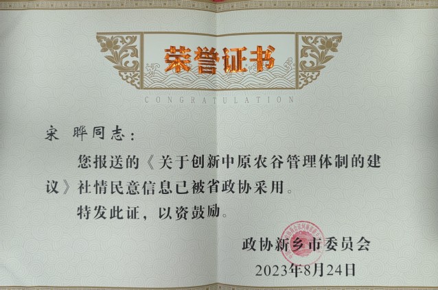 2023年8月,我校九三学社社员、副校长宋晔教授报送的社情民意信息被省政协采用