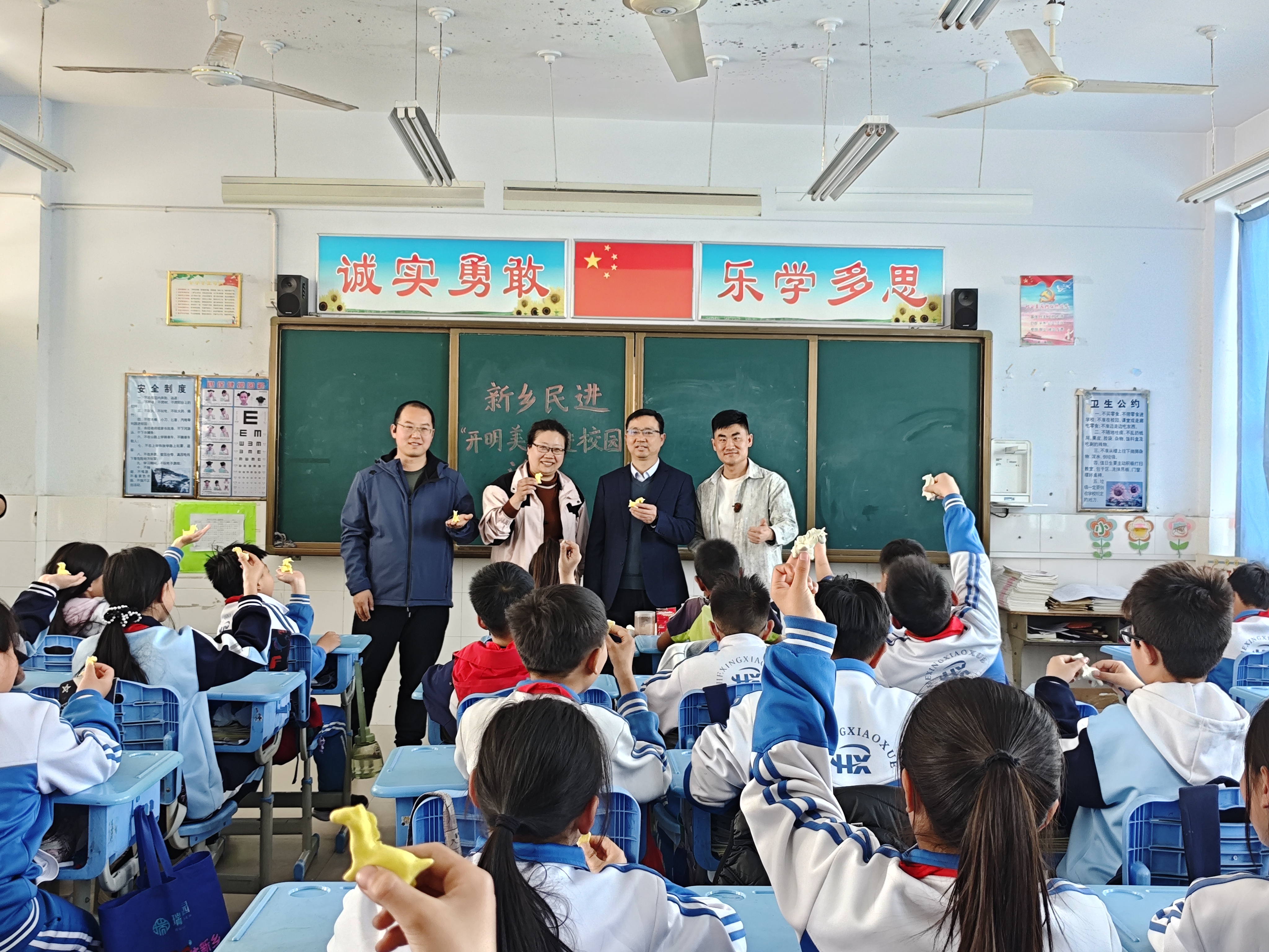 4月1日下午,民进师大支部赴红旗区关堤乡和兴中心小学,开展“开明美育·面塑非物质文化遗产进校园”活动。和兴中心小学校长王春红,民进师大支部主委焦照勇,副主委马亚强和部分会员参加活动。