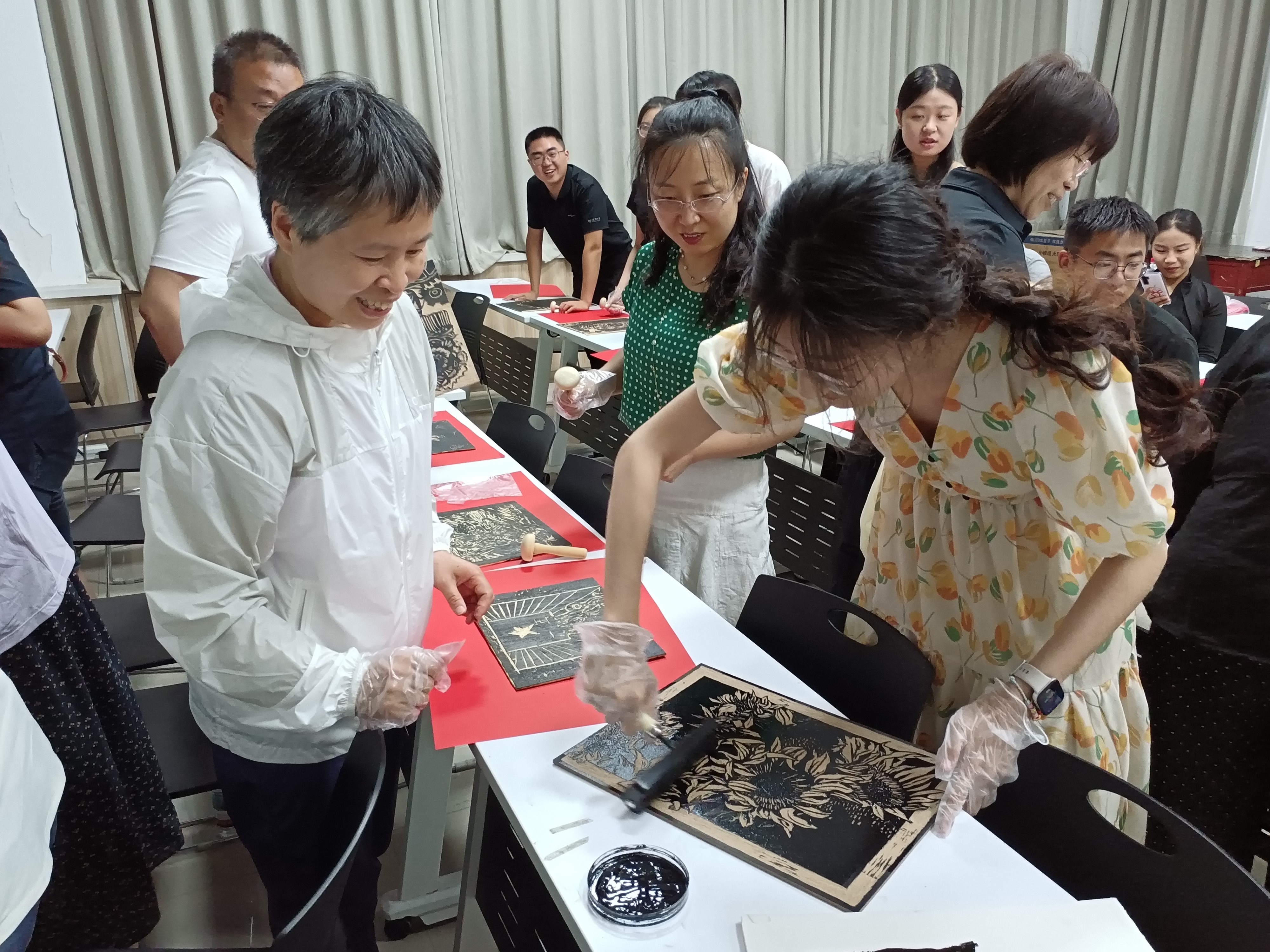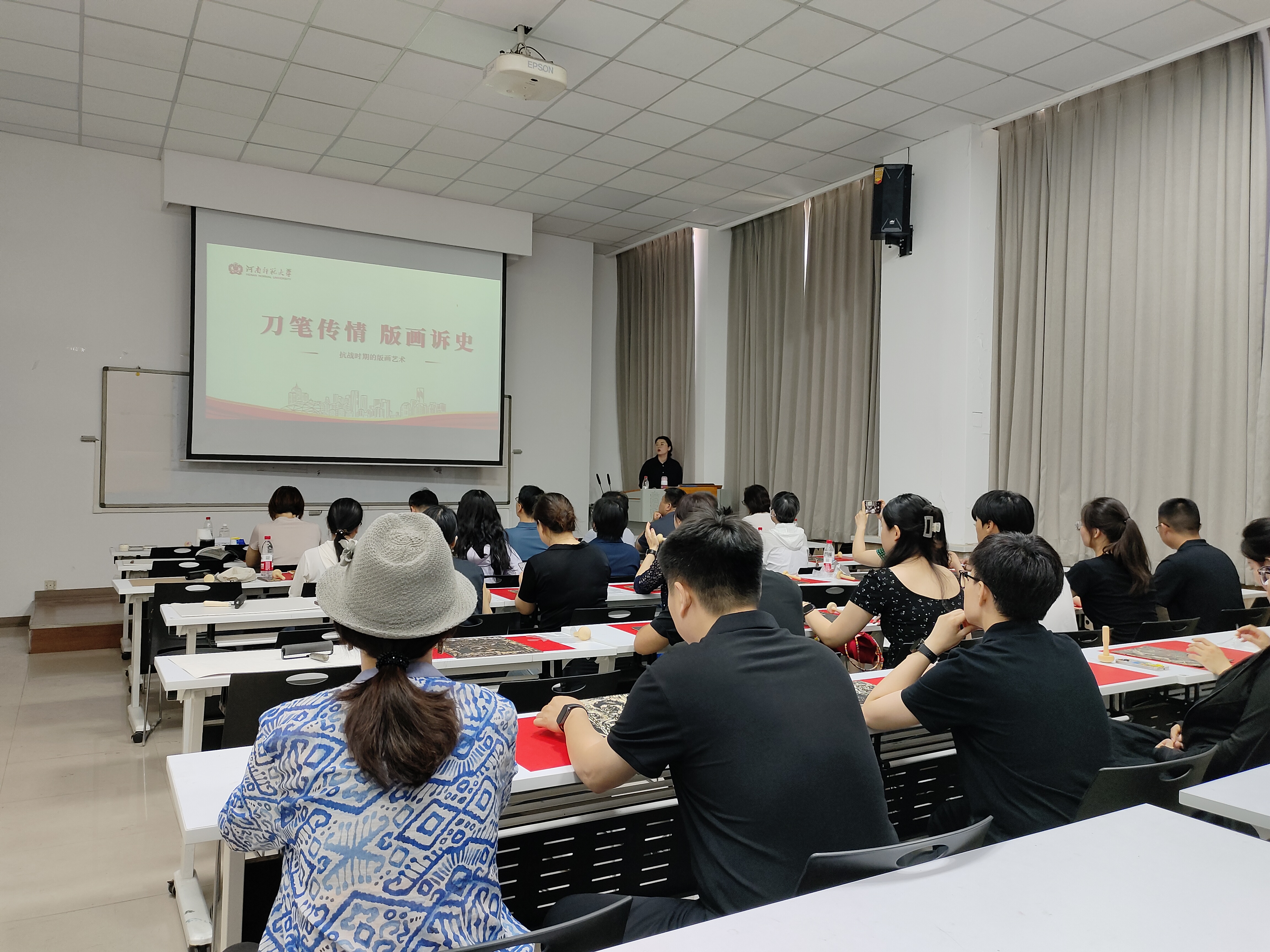 为纪念中国人民抗日战争暨世界反法西斯战争胜利80周年,进一步加强对统战成员的思想政治引领,6月12日,由校党委统战部主办,美术学院承办的“刀笔传情 版画诉史”抗战主题版画制作活动在美术学院教学楼C103顺利举办。40余名统战成员代表、统战部全体成员及美术学院主要负责人参加本次活动。