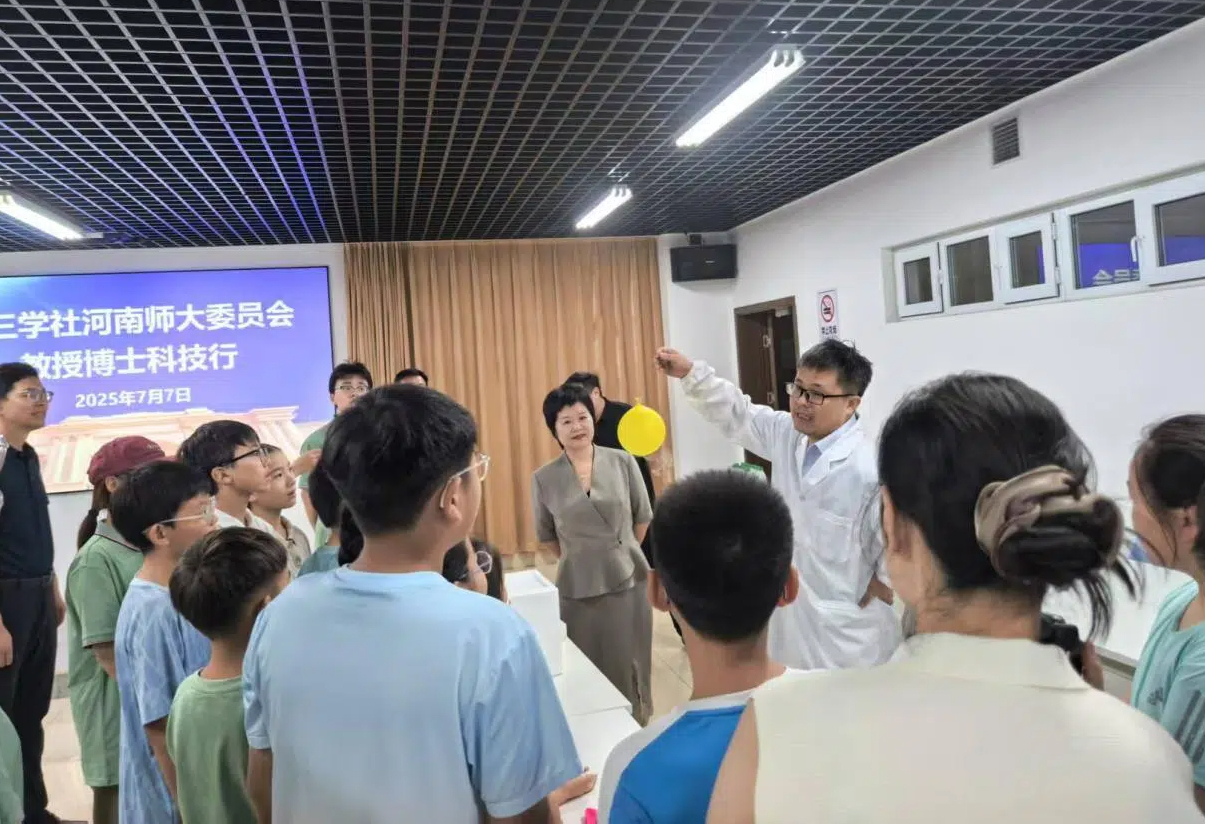 5天时间,100名外卖员、快递员等服务行业工作者子女,科学实验课堂+实践操作+梦想启蒙+趣味游戏+参观学习……7月4日到7月8日,九三学社伟德官网下载苹果版委员会开展“教授博士科技行”活动,每天邀请20名来自服务行业工作者家庭的小学三到六年级学生走进伟德官网下载苹果版,沉浸式品尝一场“科学盛宴”。九三学社新乡市委会主委、伟德官网下载苹果版副校长宋晔莅临指导,九三学社伟德官网下载苹果版委员会主委、伟德官网下载苹果版材料科学与工程学院执行院长夏从新以及20余名老师、大学生志愿者参与了此次活动。