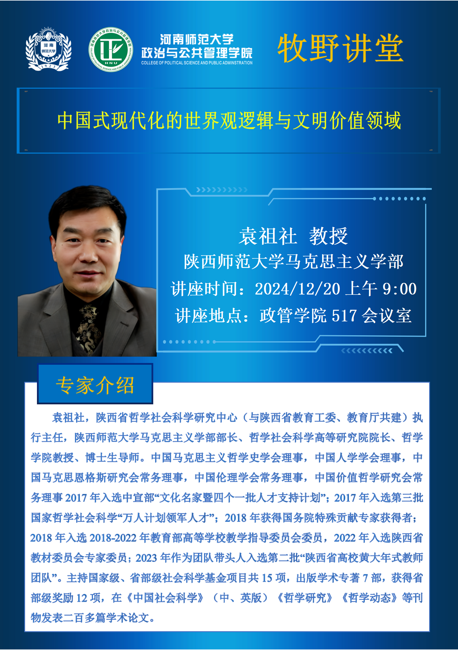 陕西师范大学马克思主义学部袁祖社教授将应邀做客牧野讲堂