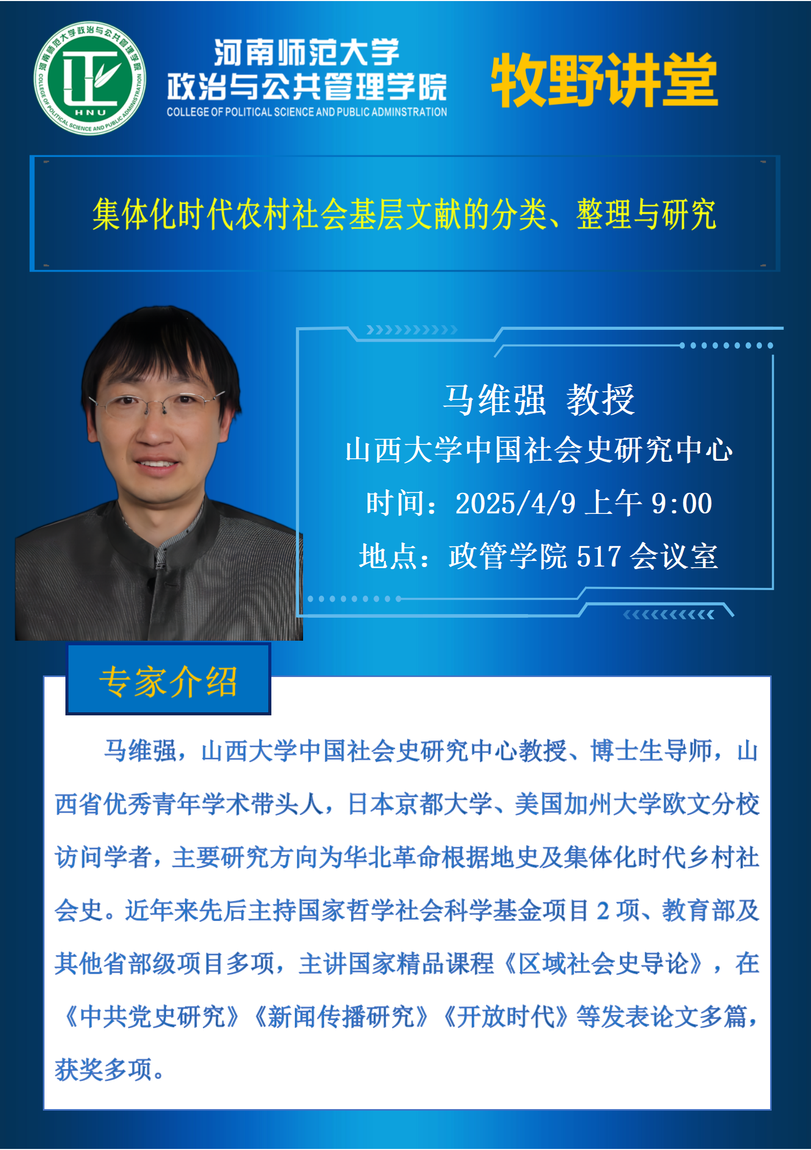山西大学马维强教授将应邀做客“牧野讲堂”
