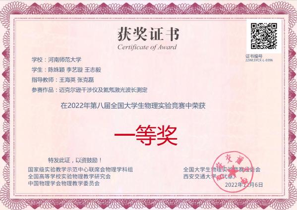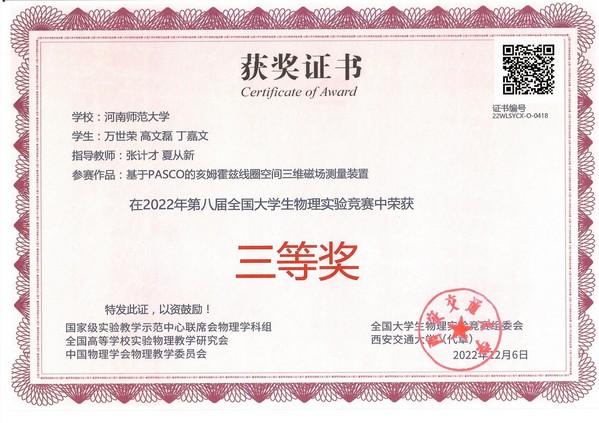 2022年第八届全国大学生物理实验竞赛获奖