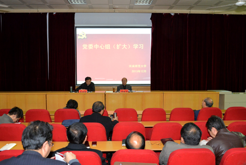 12月5日下午,我校党委中心组(扩大)在党校教室进行集体学习。会议由校党委书记周铁项主持。校党委副书记王海旺,副校长王桂兰、徐存拴、黑建敏等党委中心组成员,全校副处级以上领导干部参加了集体学习。