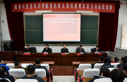 按照学校统一安排,3月10至3月13日,各学院基层党委、党总支分别召开群众路线教育实践活动动员大会。校党的群众路线教育实践活动领导小组组长、党委书记周铁项,校活动办督导组组长、纪委副书记闫留义和督导组其他成员先后到数学与信息科学学院、教育与教师发展学院参加动员并征求意见。以上相关单位党政领导、教职工、学生党支部书记等参加会议。