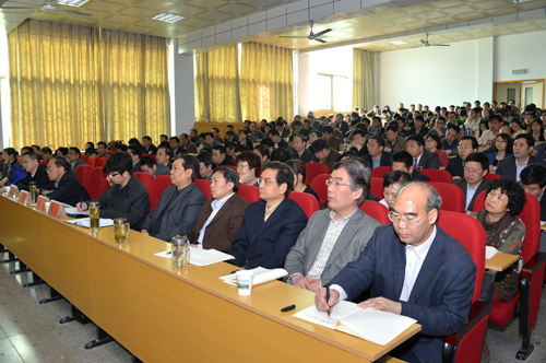 根据我校党的群众路线教育实践活动安排,3月28日上午,校长王键吉以《以开展党的群众路线教育实践活动为动力,持续提升学校核心竞争力》为题为全校党员干部作专题辅导报告。省委老干部局副巡视员刘进周、省科学院人事处科员腾飞莅临报告会现场。校领导班子成员、处级干部及部分师生党员代表参加了报告会。报告会由校党委书记周铁项主持。