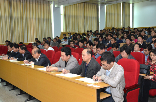 4月29日下午,校党委副书记、工会主席王海旺在党校教室以《深入开展党的群众路线教育实践活动,着力提升大学生思想政治教育有效性》为题为党的群众路线教育实践活动作专题辅导报告。校党委书记周铁项出席了报告会,校活动办副主任,学生处、校团委、就业指导服务中心全体人员,教务处、研究生学院、后勤处主要负责人,各教学单位书记、院长、副书记、团委书记、学生专兼职辅导员参加了报告会。报告会由副校长孙先科主持。