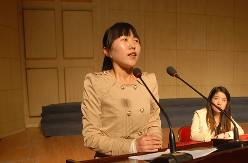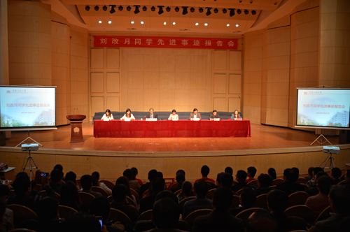 报告会开始前,大家观看了媒体报道刘改月先进事迹的视频新闻。刘改月同学作了题为《发自内心的热爱,源自奉献的幸福》的报告,她自己把上课当生活,把同事当亲人,把学生当孩子的亲身经历朴实生动地讲述出来,表达了自己对学生和教育事业的无限热爱。报告中,她发自肺腑地说:“如果现在让我接受央视采访,我会说,在兰考顶岗实习的这三个多月,虽然物质生活非常艰苦,但是我很幸福!因为我深深地体会到能够做自己喜欢的事,并通过努力把它做到了最好,充分展示了自身的价值,这就是我人生最大的幸福!”她这种不怕艰苦,迎接挑战、勇于奉献的精神感动了在场所有人,观众时时爆发出雷鸣般的掌声。