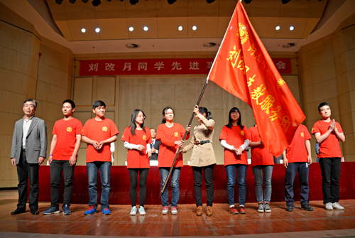 最后,副校长孙先科向我校学生自发组成的“刘改月支教服务团”授旗,并鼓励支教服务团同学把刘改月精神传递下去。