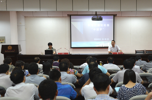 6月18日下午,副校长王桂兰在勤政楼第四会议室以《科学把握和助推“中国梦”》为题为我校党的群众路线教育实践活动作专题报告。校党委书记周铁项出席报告会,校活动办相关成员及处级干部和师生党员代表参加了报告会。报告会由副校长黑建敏主持。