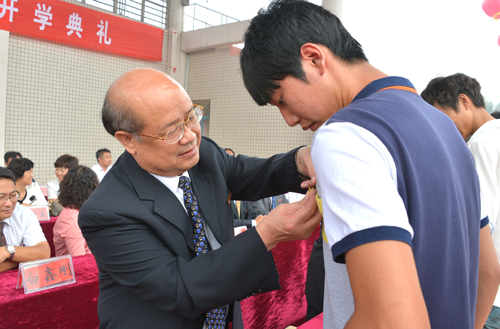 典礼上特别安排了佩戴校徽仪式,在主席台前排就座的各位领导亲自给各位新生代表佩戴校徽,并嘱咐大家珍惜师大情谊、同窗友谊和青春美好时光,在思考中确立自我、寻求真理、把握时间。2014级全体新生表示,他们一定会珍惜时光,努力成长,用最优异的成绩为学校增添新的光彩!