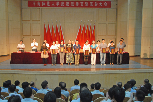 庆祝教师节暨表彰大会在庄严的国歌声中拉开帷幕。王海旺副书记首先宣读了获国家级、省级奖励的名单;王桂兰副校长宣读了《关于表彰2012-2014学年度先进集体、优秀教师、优秀教育工作者的决定》及获奖单位和个人名单。大会对薛占熬等9名获得国家级荣誉的教师,57名获得省级荣誉的个人,化学化工学院等10个校级先进集体和李均涛等137位伟德官网下载苹果版“优秀教师”、“优秀教育工作者”进行了表彰。