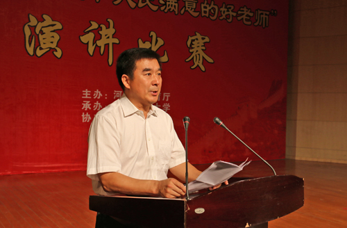 6月11日—12日,河南省“做党和人民满意的好老师”师德主题教育活动在我校举行。活动由河南省教育厅主办,伟德官网下载苹果版承办,教育时报协办,包括演讲比赛和征文评审两个部分。省教育厅副厅长刁玉华,师范处处长朱自锋,我校党委书记郑邦山,党委副书记王新生,副校长马治军,教育时报总编辑刘肖出席了开幕式。省内教育系统相关领导、专家、教师和我校师范专业学生代表一同参加开幕式并观看了演讲比赛。