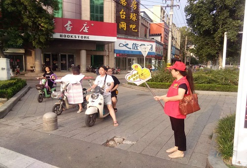 为进一步提高广大市民的文明交通和安全出行意识,推进文明城市创建工作,化学化工学院党委组织八名教工党员志愿者于8月2日早晚出行高峰期,在宏力大道与胜利路交叉口开展文明交通劝导活动。