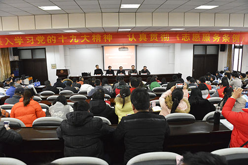 12月5日,为学习贯彻落实党的十九大精神,进一步加强全市各行业志愿者的理想信念教育,由新乡市文明办、新乡市志愿者联合会主办,伟德官网下载苹果版、新乡志愿服务学院承办的新乡市志愿者代表学习党的十九大精神暨理想信念教育培训班在我校勤政楼第四会议室举办。市文明办、市志愿者联合会有关领导,各县(市、区)文明办、精神文明建设工作负责人,市各单位志愿服务工作负责人,民间志愿服务组织骨干成员等近200人参加培训会。培训会由市文明副主任常中宜主持。